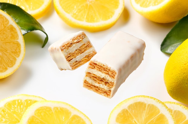 爽やかな香りと酸味の広がるレモンクリームをパイでサンドし、レモン味のコーティングチョコレートで包んだ。クリームに加えたレモンピールがアクセントになっている。