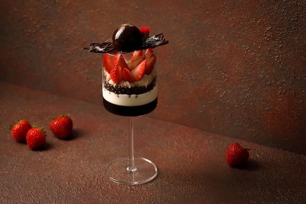 「まりひめのティラミスパフェ スモークエッセンス」は、和歌山を代表するブランド苺「まりひめ」や、濃厚なマスカルポーネチーズを合わせた贅沢なティラミスを味わえる豪華なパフェ。