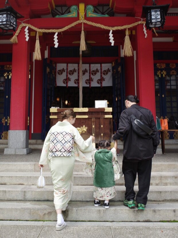 我が家は ①着付け→②参拝・祈祷→ ③曾祖母に会いにいく ※フォトスタジオと食事会は無しで、私と旦那さんで当日はカメラマン係に。
