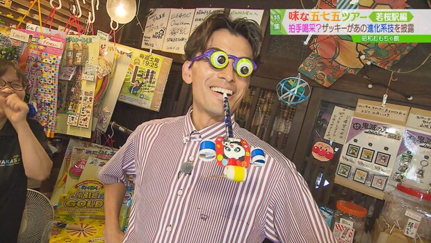 ひょうきんな見た目のおもちゃや、おもちゃの定番・けん玉など、食べて遊んで、楽しく懐かしい商品がたくさん並んでいます。