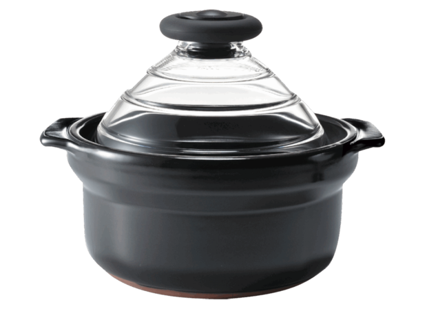 伊賀の粗土でできた鍋は、木のように呼吸するので、ごはんがベタつかない。遠赤外線効果の高い釉薬を使用しているので、米の芯まで熱が通り、ふっくらとした炊き上がりに。二重のふたは圧力釜の機能を果たし、吹きこぼれも防ぐ。