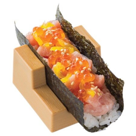 フィリピンの「まぐろマンゴーマヨ」240円(税込)は、マヨネーズ、アボカド、そしてマンゴーの酸味が調和した甘酸っぱいソースを人気のまぐろにトッピングした、冒険心あふれる一品。