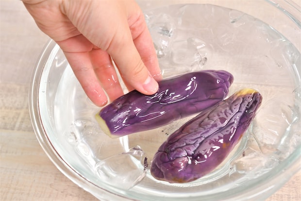 急激に冷やすことで、とろりとした独特の食感が生まれます。皮の色も鮮やかな紫色になって、見た目も映えます♪