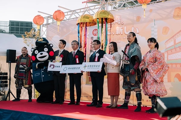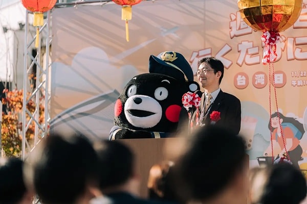 イベントオープニングセレモニーは11月22日(土)、阿蘇くまもと空港の空岡公園にて開催され、熊本武将隊による地方色豊かなパフォーマンスや、熊本県のマスコット「くまモン」との交流が行われ、温かく親しみやすいおもてなしの姿勢が示された。現地には、交通部観光局大阪事務所所長・張珏氏、桃園国際空港董事長・楊偉甫氏、熊本県知事・木村敬氏、熊本国際空港社長の山川秀明氏らが出席し、台湾と日本の空港が観光プロモーションで緊密に協力していることを象徴した。