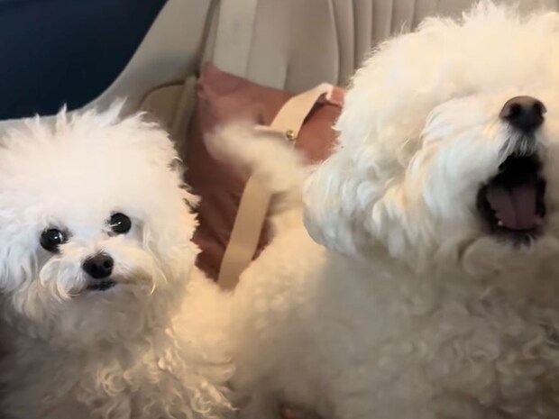 後ろの犬さんは邪魔をしないように静かに位置調整。