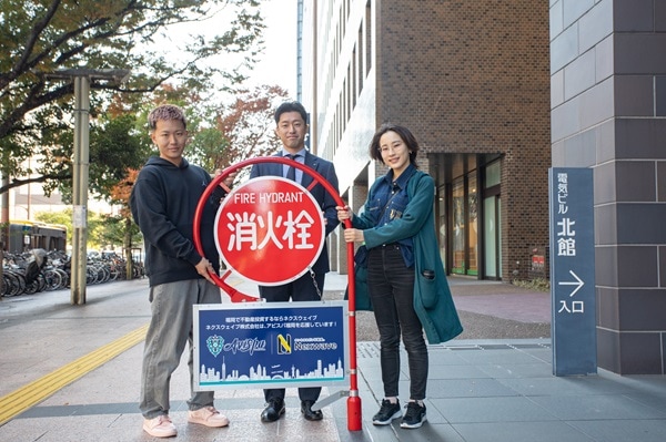 ネクスウェイブは、日常の風景の中に自然に溶け込みながら、もしもの時に「ここに消火栓がある」と気づける街づくりを、「アビスパ福岡」とともに進めていく考えだ。