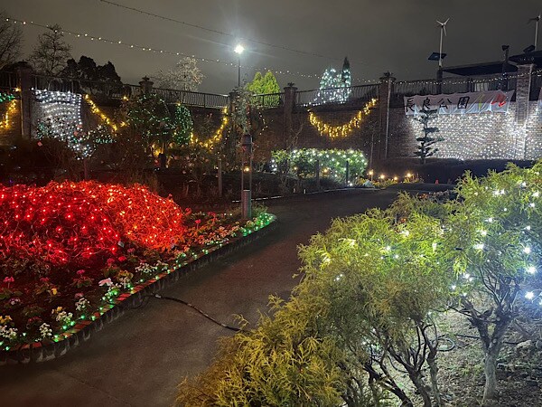 広々とした開放感のある公園でのイルミネーションはたいへん美しく、一昨年や昨年のイルミネーションも花壇や遊具、木々などさまざまな場所に電飾が散りばめられ、元々の場所を活かした素敵な空間となっていた。