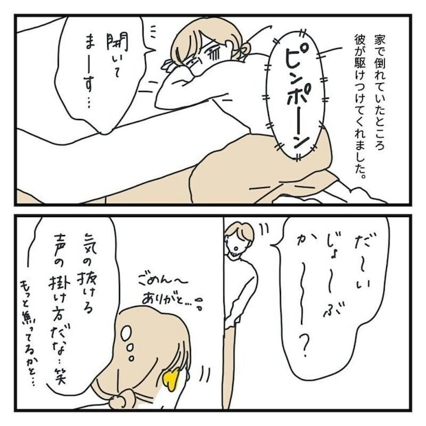 キクチさんは、彼がそばにいてくれて安心感があったことでしょう。彼の優しさに身も心も救われたようです。