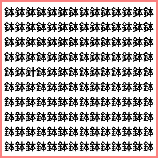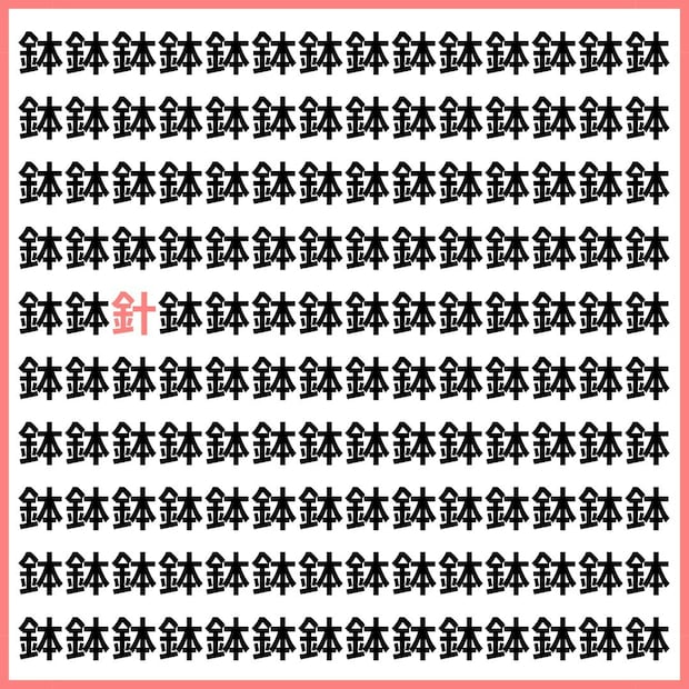 たくさんの「鉢」の中に、1文字だけ違う漢字が混ざっています。