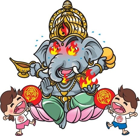 「チンチーンカレーせんべい」のパッケージには、縁起のいい神様をイメージした象キャラ「どうさん」が登場。「どうさん」という名前は、和歌山人が、ざ行とだ行が言い分けられないことに由来するという。