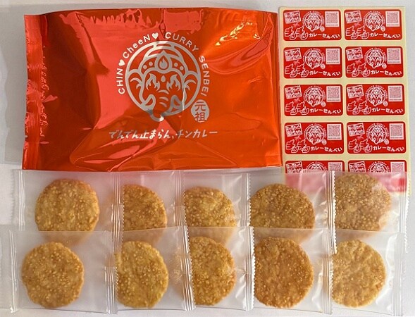 「チンチーンカレーせんべい」には、観光みやげとして楽しめるよう「チンチーンシール」が同封されている。透明の個包装に貼ってお土産として配れる用に同封されたシールだが、スマホ、シール帳、冷蔵庫など、旅の思い出として気軽に貼ることもできる。