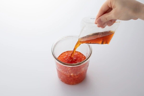 今回のコラボレーションは、北海道の食への敬意と、「良いものをさらに良いものへ」と磨き上げる姿勢が共鳴して実現したそう。9〜10月に水揚げされた、うまみが凝縮する時期の完熟いくらを厳選。そして、日高昆布・棹前昆布・かつおを合わせた特製昆布たれをセットにしている。