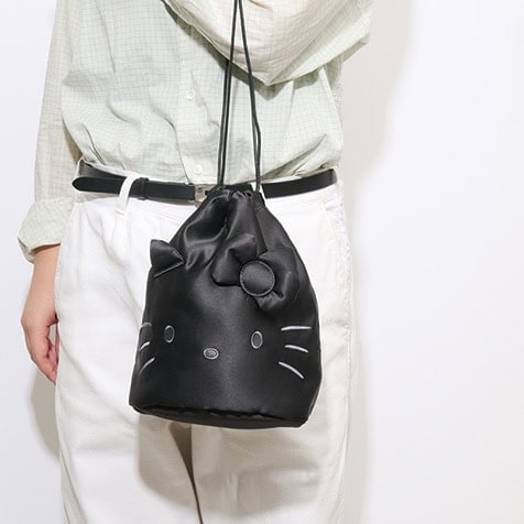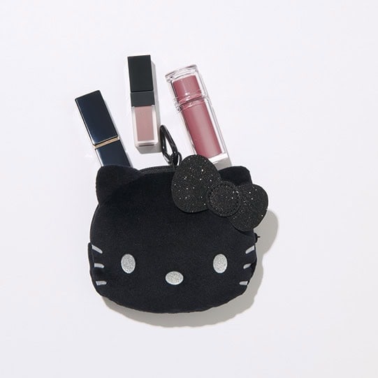1月号増刊にはなんと!上品なサテン調素材を使用した高級感たっぷりのフェイス巾着ポーチがついてきます。 バッグインバッグとしてはもちろん、これ単体でもお出かけできちゃうシックな黒ポーチです。個人的に、バッグ一面みっちみちにキティちゃんのお顔っていうのがたまらないわと思っています。