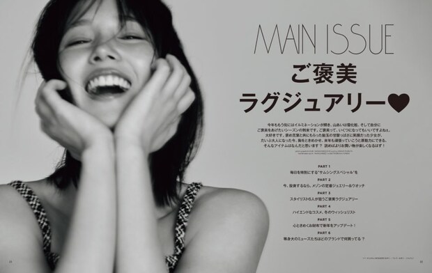 1月号の大特集は『ご褒美ラグジュアリー♥』。年末年始のホリデーシーズンって、大人になるとパートナーとか子どもとか、お世話になった方に「プレゼントするものを考える」局面のほうが増えてくる気がしますが、たまには1年頑張った自分にご褒美をあげてもいいのではないでしょうか。……なーんて言いながら1年中自分にご褒美しまくるのがオトナミューズスタイル! ですが、今号はそんなご褒美リストが刷新される決定版な内容ですぞ!