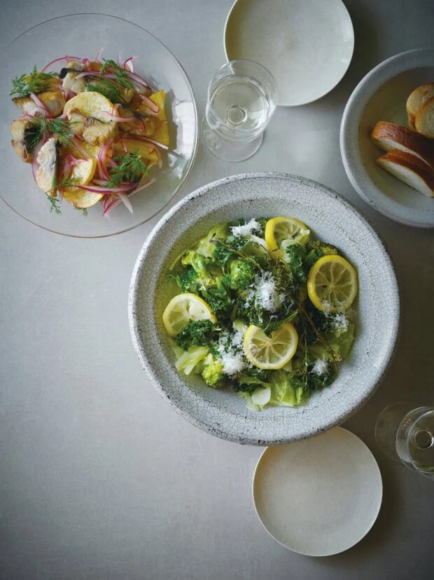 左上は塩サバとじゃがいものディルマリネ、右下は野菜のくたくたレモンオイル蒸し。どちらも洒落散らかしていますが、レシピは3行程しかないんです。そうそう、オトナミューズのレシピの基本は「簡単で美味しい」ことなんです。難しいレシピは専門誌におまかせ♡