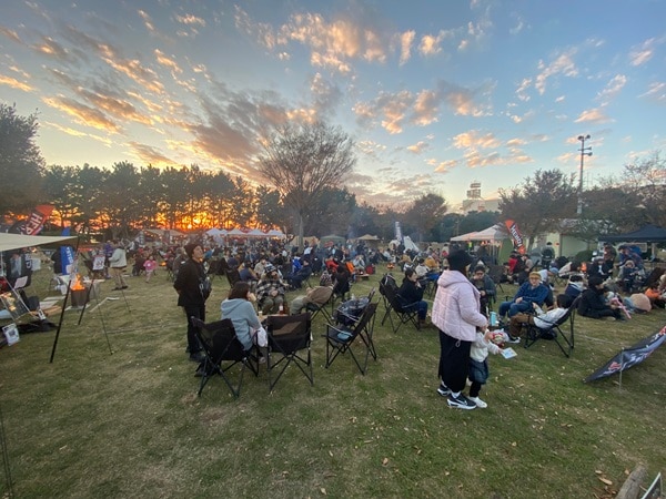 「焚火ラウンジ」は、焚火台を囲むように300席以上のチェアが配置され、開場から閉場まで出入り自由で利用できるそうだ。