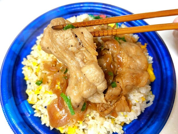 炒飯だけを食べて、豚肉だけを食べて、一緒に食べて......この一品でいろいろな楽しみ方ができるのも嬉しいですね。