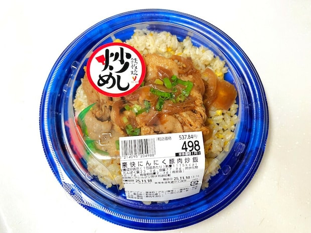 今回紹介するのは、惣菜売り場でも存在感があった「豪快にんにく豚肉炒飯」です。