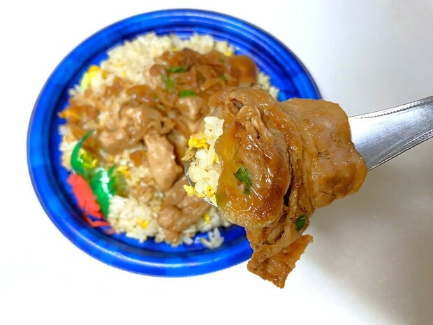さらに炒飯の上に豚バラ肉がたっぷりのっているから、こってり感とボリュームも満点で満足度大!