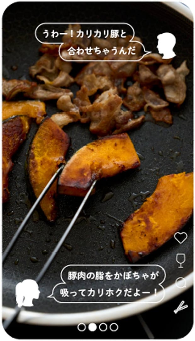 豚バラをカリカリに焼いて脂を引き出し、うまみをかぼちゃに吸わせる。脂が多すぎる場合はペーパーで拭き取る。中はホクホク、外はカリッとのやみつき食感に。