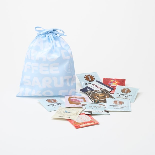 普段から猿田彦珈琲のドリップバッグを使っている人、地方店舗限定のドリップバッグを手に取りやすい価格で楽しみたい人におすすめ。福袋限定巾着付き。