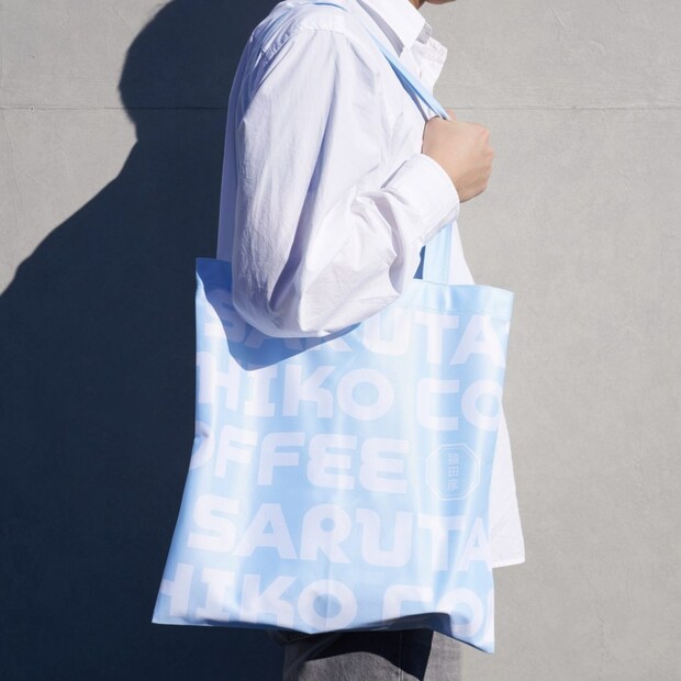 猿田彦珈琲の英字ロゴを大胆にあしらった、通年使いやすい福袋限定デザインのトートバッグ。A4サイズも楽々に入る。