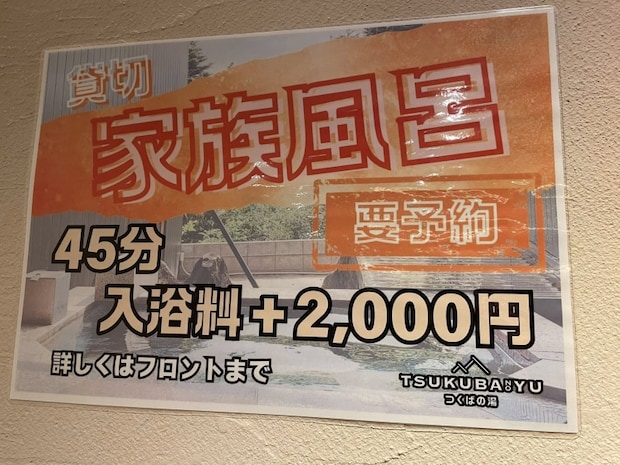 つくばの湯では温泉をプライベートで利用できる貸切風呂のサービスがあります。