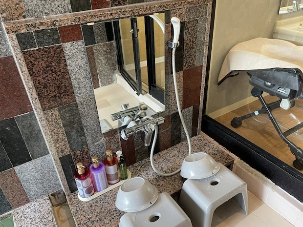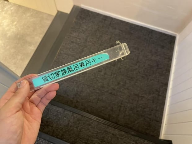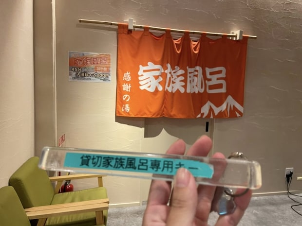 事前に予約後、フロントで受付を済ませて、簡単な説明と家族風呂の鍵をもらい、いざ浴場へ。