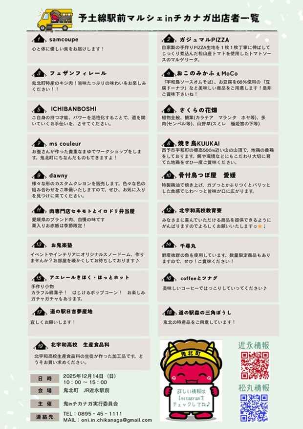 愛媛と高知を結ぶJR予土線の駅前2会場で、特別なマルシェが同時開催されます。
