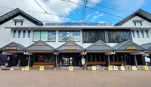松丸駅舎内には、100年前の酒樽をイメージした露天風呂付き天然温泉も併設されており、列車の風景を眺めながらゆったりとした入浴体験ができます。