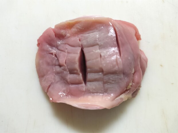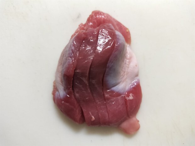 そこで、このレシピのように両面に細かく切れ込みを入れることで、火が入りやすくなります。切れ込みがないと中まで火を通すのに時間がかかり、外側が焦げてしまうことも。片面だけの切れ込みでも効果はありますが、両面に入れることでさらに火通りが良くなり、揚げ時間も短縮できます。