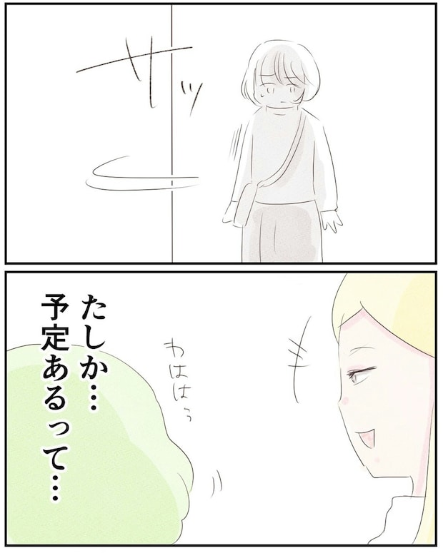 ある日、いちかちゃんが相川さんと平田さんの子どもと遊びたいと言い出したことで、小野さんは2人に連絡を取ります。いつもならすぐ来る返信もなかなか来なく、やっと連絡が来たと思ったら、2人とも都合がつかないようでした。仕方がないと割り切って次の日買い物にいった小野さんは驚くのでした。