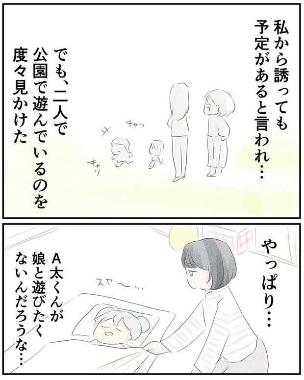 最終的に、小野さんは2人と少し距離をとる決断をします。もし関係を保っていたら、自分の気持ちを押し殺しながらの付き合いになっていたかもしれません。いくら子ども同士が同じ年でも、親同士が無理に関係を続ける必要はない。そう気づいた小野さんは、心地よい距離感を保ちながら、わが子の環境を見守っていくことにしたのです。