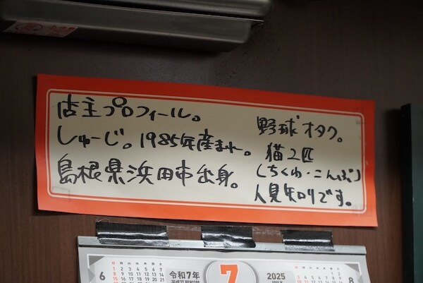 店主のしゅーじさんは島根県浜田市の出身で、野球ファン。店内では、BGMのように野球中継が流れているのも心地いい。