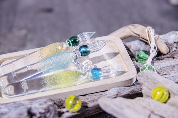 「ちまかる堂」の「オリジナルガラスペン」は、ガラスペン作家・藤田えみさんのプロダクションライン『Kokeshi』による、海をイメージしたラインナップだ。