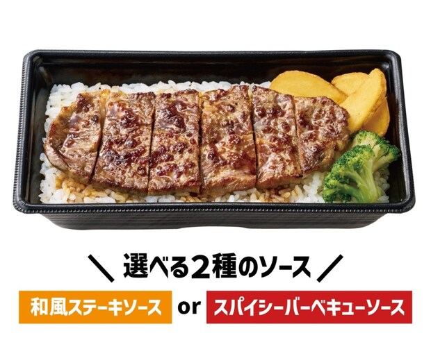 また、アンガスビーフステーキを2枚のせた「Wアンガスビーフステーキ重(肉2倍)」や、ステーキを総菜と組み合わせた「スペシャル洋風バラエティ弁当」も同時に販売を開始する。