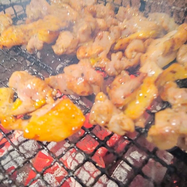 炎が立ち上る真っ赤な炭の上で豪快に焼かれる親鶏の姿から、マスターが原風景である筑豊の「ボタ山」を連想し命名したこちらは、この店の名物候補。