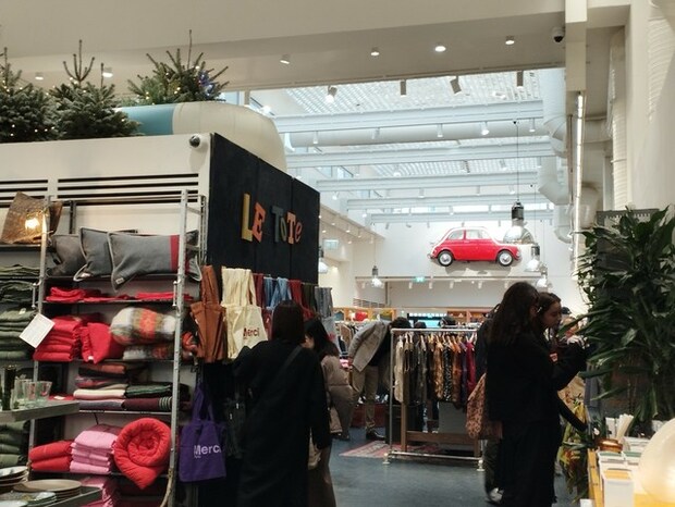 1号店同様エスプリの効いた雑貨や洋服が所狭しと並んでいる中、見上げると大きくて鮮やかな赤い車のイラストのインテリアが目につきます。