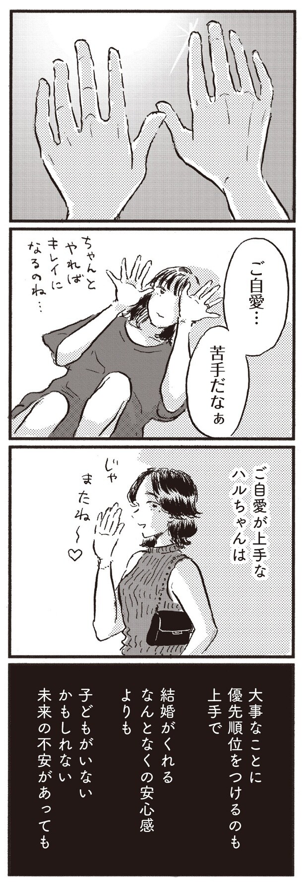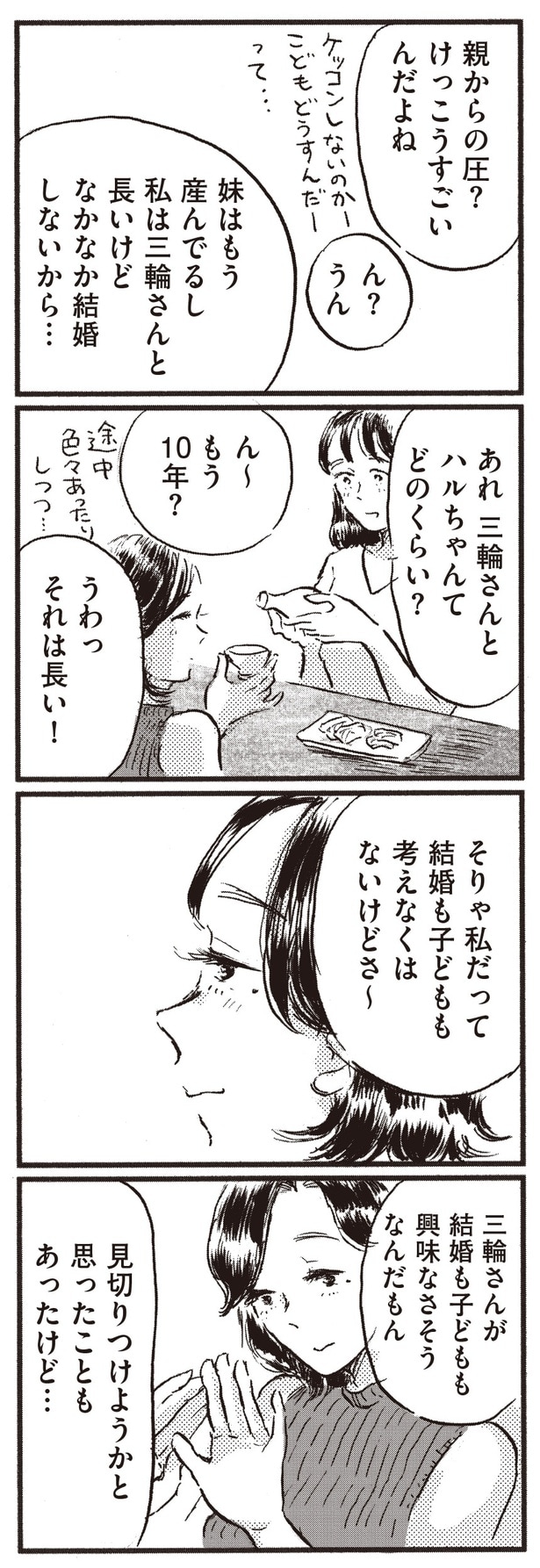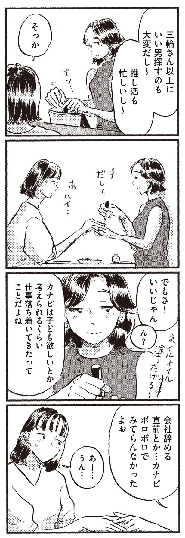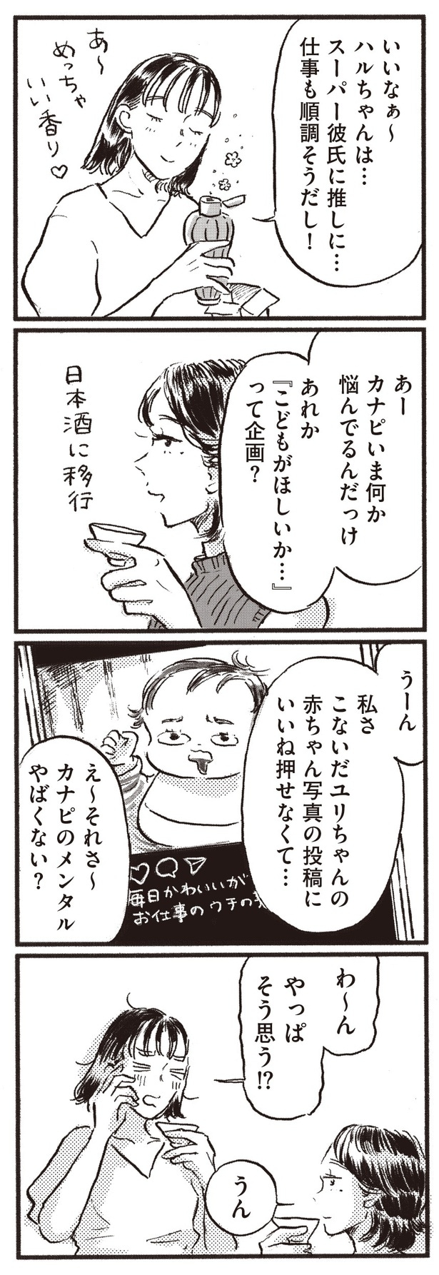 2025年11月28日 【漫画】「ご自愛不足のサインだよ~」友人に“他人の幸せ報告が喜べない”葛藤を相談すると…/子どもが欲しいかわかりません(15) WEBザテレビジョン フリーライターのカナコは、マッチングアプリで出会ったリョウと結婚して5年目。今まで心から「子どもが欲しい」と思ったことは無かったが、「高齢出産」と呼ばれる年齢に差し掛かったことで、気持ちと向き合うことに。友人や家族、夫との会話を通して、カナコは「自分にとっての幸せ」について考えていく…。 子どもの有無を手がかりに様々な幸せと出会っていくコミックエッセイ、「子どもが欲しいかわかりません」(著・大町テラス)から、全23回連載でお届け。今回は第15回となる。