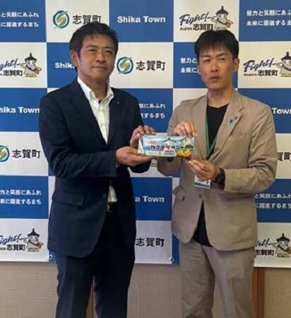 左 フジパン 西春工場長 早川智仁氏、右 石川県志賀町長 稲岡健太郎氏