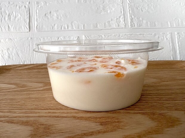 内径約11cmの容器にたっぷり入った「北海道牛乳のプルプルミルクゼリー」。