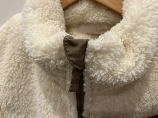 こちらも、本体はアイボリー、ポケット部分や襟の内側はカーキブラウンのツートンカラーで、アウトドアテイストのおしゃれなデザイン。