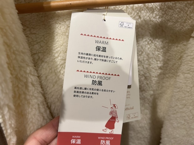 さらに、生地の裏側には起毛素材を使っているため、保温性はバッチリです。