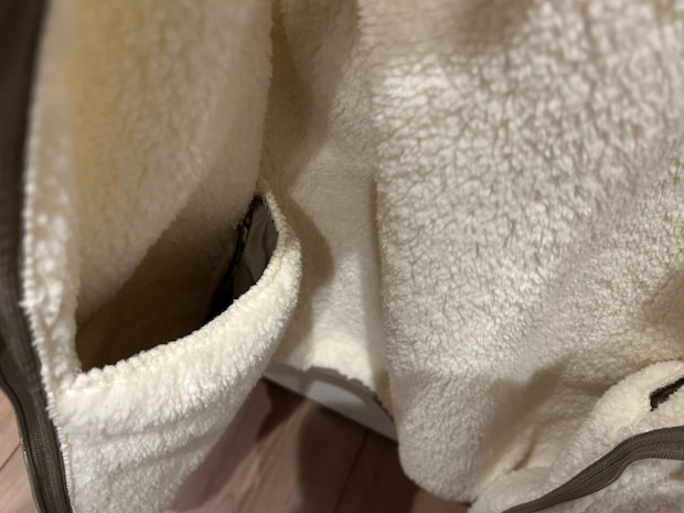 ポケット部分はボア、裏地、ボアの3層構造になっているので、お腹まわりが風を通さずポカポカ。