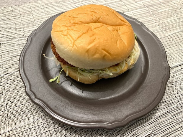 一口食べてみると、まず上下のふわふわしっとりなバンズに驚き!通常のバンズに比べるとやさしい食感が魅力的で、寒い季節に食べると温かさと相まって、どこかホッとできるバーガーです♪