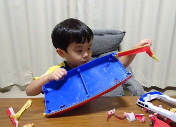 これは素晴らしい!市販のトミカフェリーをオリジナルへ改造したのですね。バラして塗装したというのには驚きです。4歳の誕生日なので船の名前は「さんふらわあ4」。しかも作業をしたのは、お父さんと息子さんのタッグというのもまたいいですね。