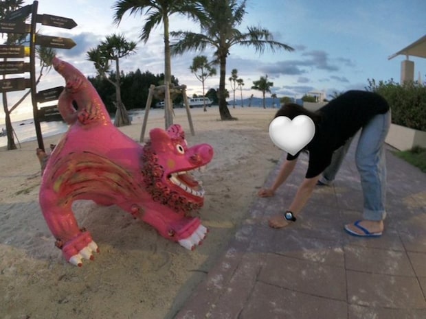 この投稿に「ちびシーサーかわいい」「お二人とも、おちりかわいい🩷」などのリプライが寄せられていました。