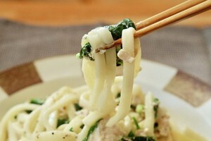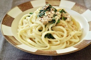 ツナ缶のうまみと牛乳のミルキーさが混ざり合い、うどんにしっかりと絡まっておいしい!