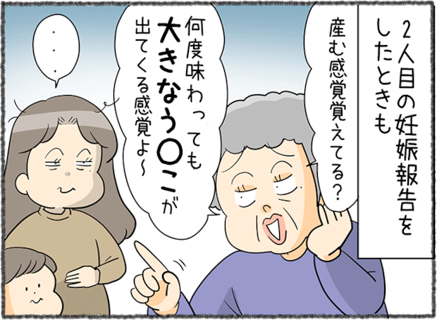 初めての妊娠・出産では、先輩ママの体験談はとても参考になりますよね。けれど、実母と会ったり電話をしたりするたびに具体的すぎるアドバイスを聞かされたママさんは、だんだんモヤモヤが募っていったそうで…。 3人の出産経験があるというお母さんは、分かりやすく出産のイメージを娘に伝えようとしたのでしょう。出産経験のある方の中には、「う◯こを出す感覚」という表現に共感する部分もあるかもしれませんが、もう少し新米ママの気持ちに配慮したアドバイスでも良かったかもしれませんね(苦笑)。