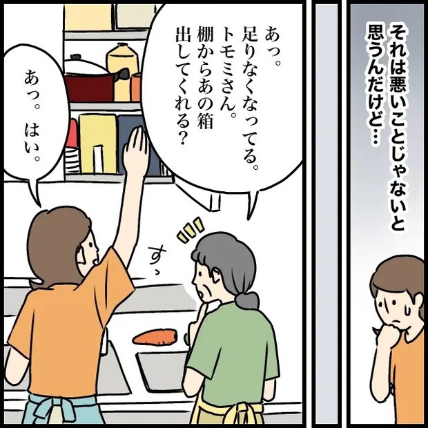 その後、義母と一緒に食事の支度をしていると、「あっ。足りなくなってる。トモミさん、棚からあの箱出してくれる?」そう言われ、「あっ。はい」と返事をして吊り戸棚を開けると、